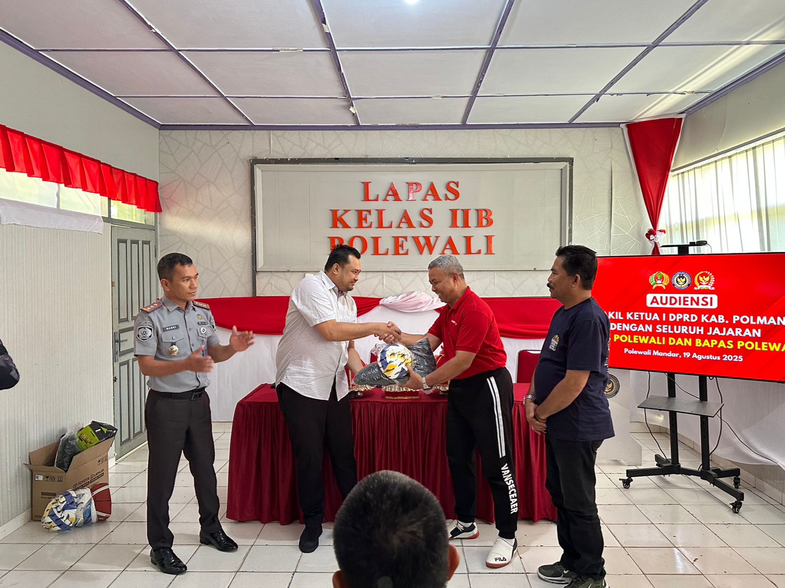 Kunjungan ini tidak hanya sebatas silaturahmi, melainkan juga menjadi momen penting audiensi sekaligus penyerahan bantuan perlengkapan olahraga bagi Warga Binaan Pemasyarakatan (WBP). Bantuan tersebut berupa sejumlah peralatan olahraga, di antaranya net, bola voli, bola basket, bola takraw, serta perlengkapan pendukung lainnya.